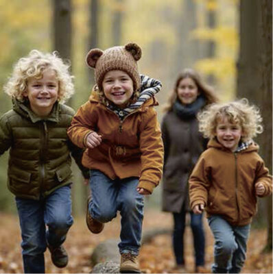 Im KI-ndi der Zukunft geht´s aktiv zu, von früh bis spät. Einer der wichtigsten Tagesmomente ist die Aufziehzeit, in der die unsichtbaren, am Rücken der Kinder angebrachten Aufziehfedern gespannt werden, wonach die Kinder sich wie Roboter im Gleichtakt in Bewegung setzen.