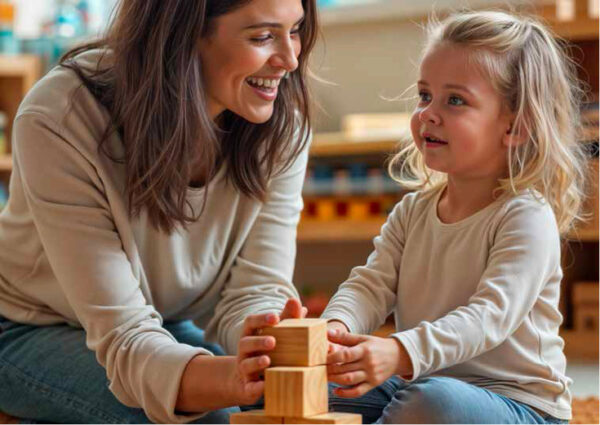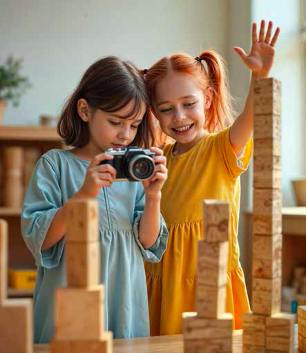 Mit manchen Kindern entwickeln die Fachkräfte im KI-ndi der Zukunft besondere Beziehungen. Sie tragen die gleichen Pullis, Jeans und Frisuren. Die Bausteine tasten sie auf die gleiche Art nur ganz leicht an und schauen dabei entrückt aneinander vorbei. Herzchen-Emoji!