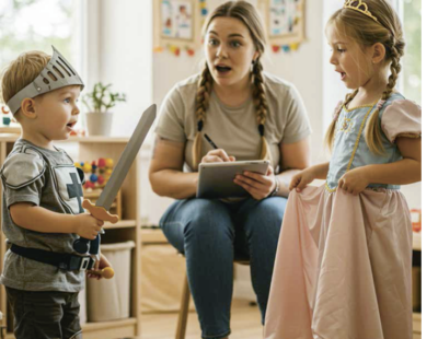 Beobachtung ist im KI-ndi der Zukunft Action pur! Mal ernsthaft: Gibt’s was Geileres, als chillig im Stühlchen zu sitzen und Kindern bei ihren random-Ritterspielen zuzuschauen, um dann im Beobachtungsbogen zu notieren: maximale Engagiertheit.