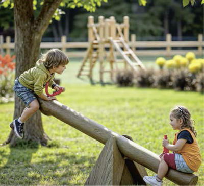 Ist ein Kind übergewichtig? Das ermittelt man im KI-ndi der Zukunft mit einem ganz einfachen Trick: Das Kind muss sich auf die kurze Seite einer Wippe setzen. Senkt sie sich entgegen der Physik nach unten, während ein anderes Kind auf der langen Seite sitzt, ist klar: Zu schwer, Ernährungsberatung nötig.