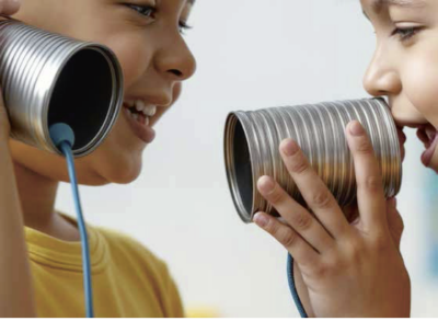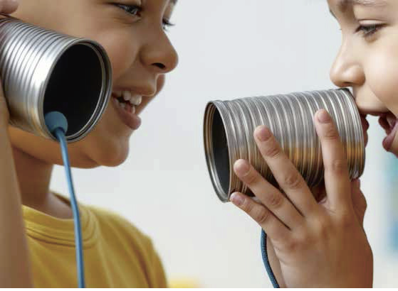 Auch im KI-ndi der Zukunft sorgt das Dosentelefon für Tüftlerspaß. Während Experten bisher behaupteten, man müsse in die offene Dosenseite sprechen und die Verbindungschnur spannen, beweisen diese Kinder das Gegenteil: Man kann auch in die geschlossene Dosenseite sprechen und die Dose wie einen Telefonhörer ans Ohr halten – man versteht trotzdem jedes Wort. Vorausgesetzt, man steht direkt nebeneinander.