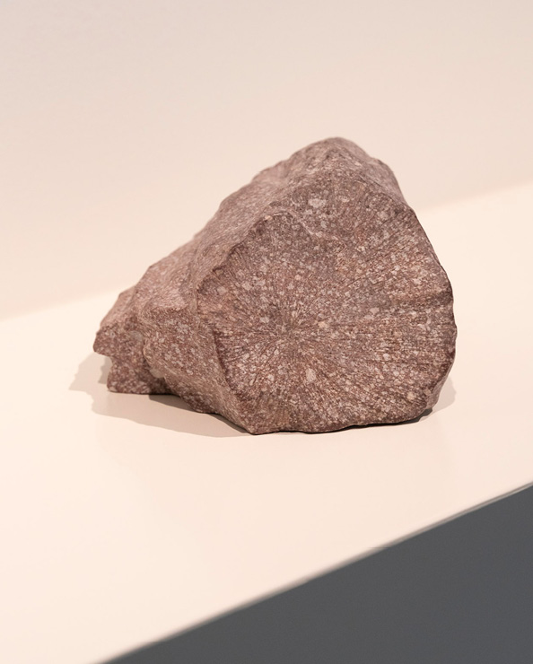 Ergänzend dazu präsentiert Orlow Skulpturen aus Vulkangestein – 3D-gedruckte Fossilien versteinerter Bäume, in denen Jahrmillionen eingeschrieben sind.