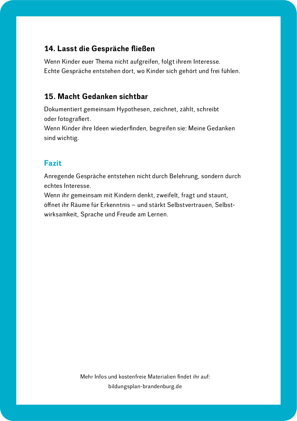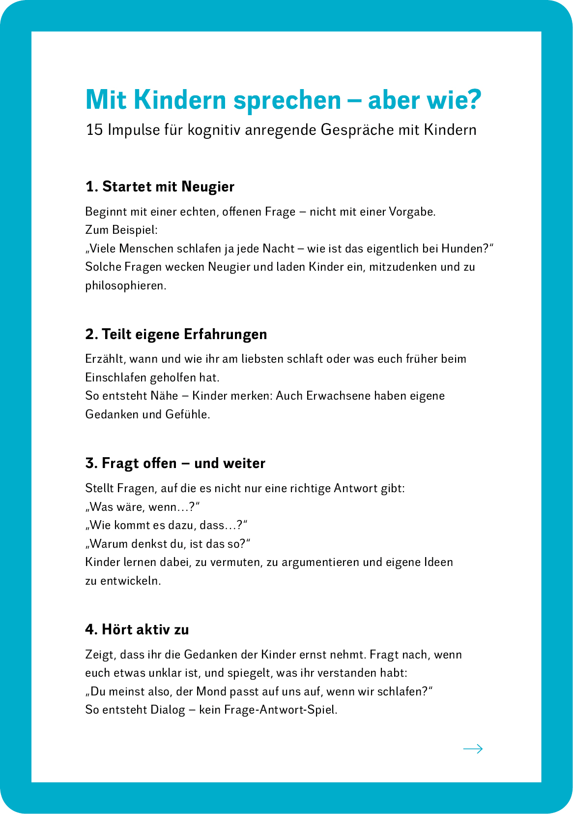 - Erwachsene gewinnen neue Gesprächsanlässe – und ein tieferes Verständnis für die Kinder, mit denen sie leben und arbeiten.